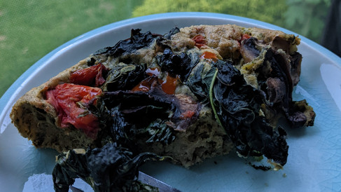 Crustless Quiche with the turnip and broccoli greens and tomato